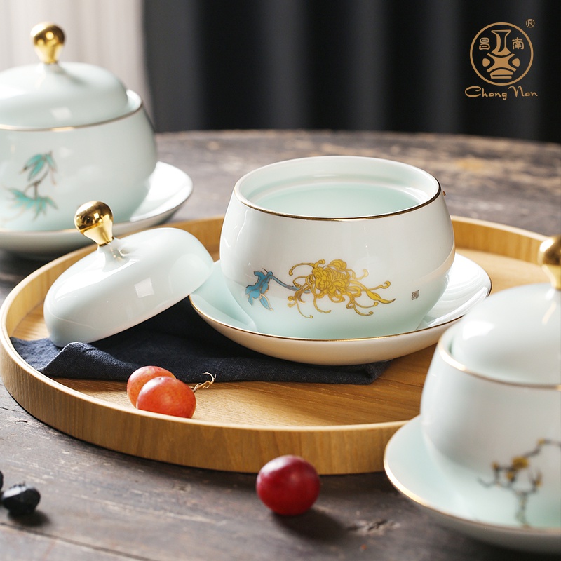 影青描金“四君子”燉盅