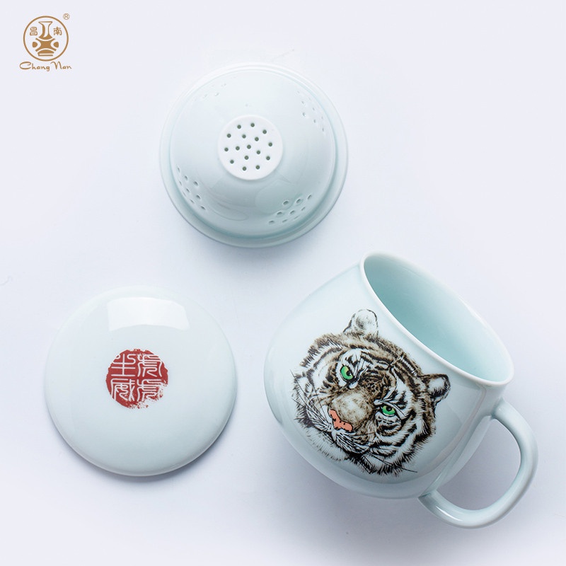 影青“虎虎生威”蘋果杯