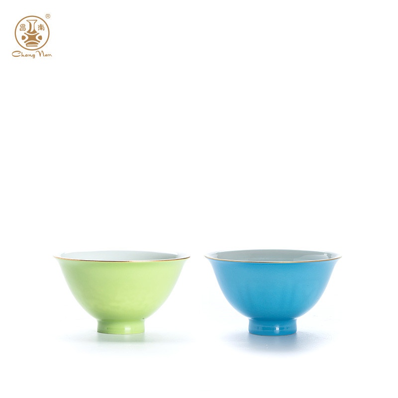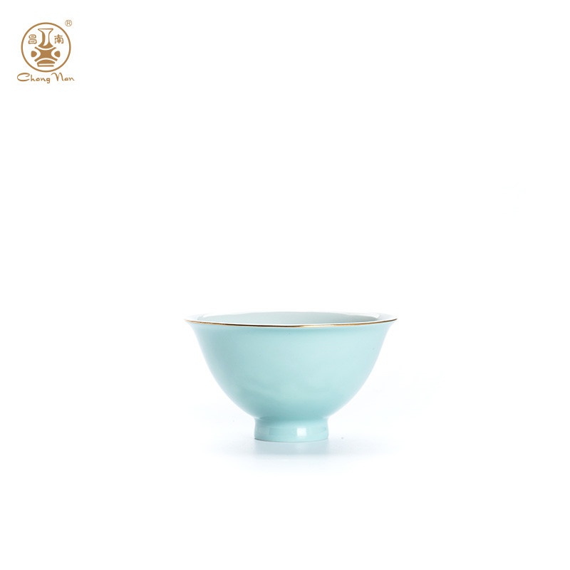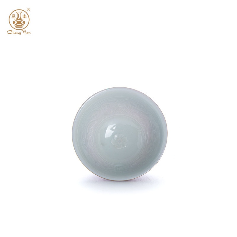 顏色釉影青雕刻撇口斗笠杯